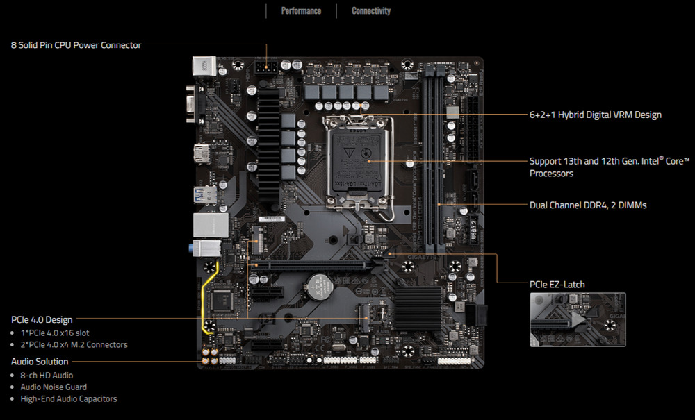技嘉 B760M D2H DDR4(M-ATX/Realtek 2.5Gb/註冊四年保)6+2+1相供電