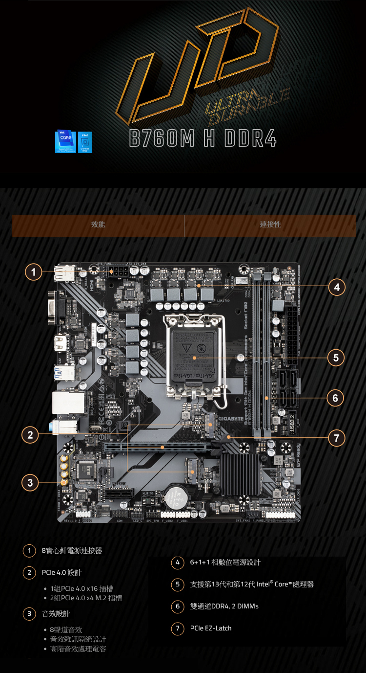 技嘉 B760M H DDR4(M-ATX/Realtek 1Gb/註冊四年保/2DIMM)6+1+1相供電