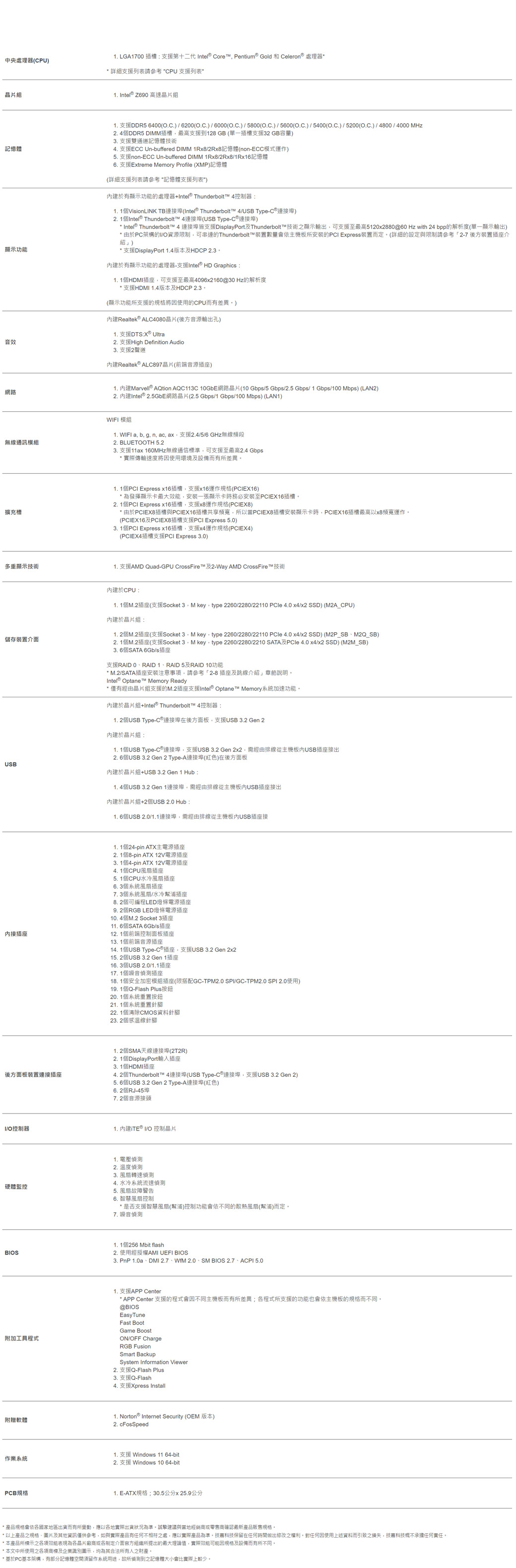 技嘉 Z690 AERO D(E-ATX/1H/Marvell10G+Intel 2.5GbE+Wi-Fi 6E/註冊五年)16相電源