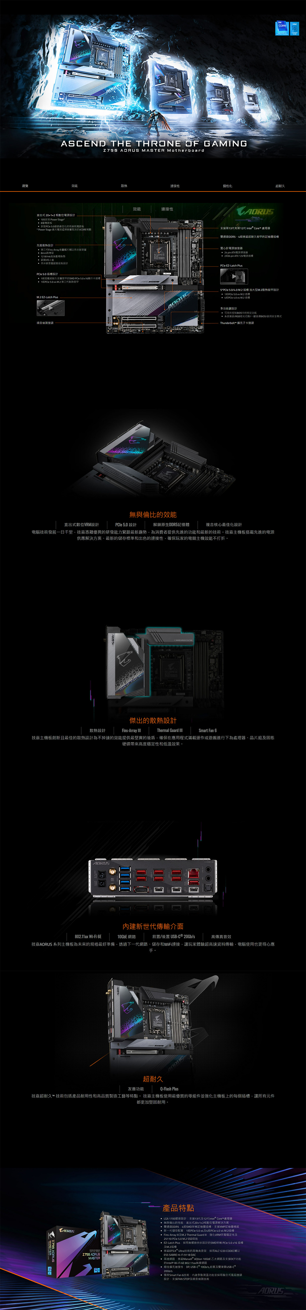 技嘉 Z790 AORUS MASTER(E-ATX/Marvell 10G+Wi-Fi 6E/註冊五年)20+1+2相電源