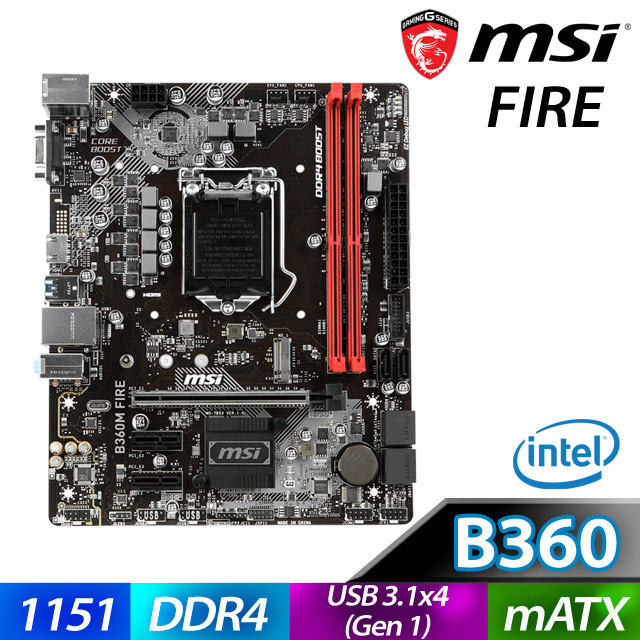 微星 B360M FIRE【五行系列-火】(M-ATX/1A1H/註五年)