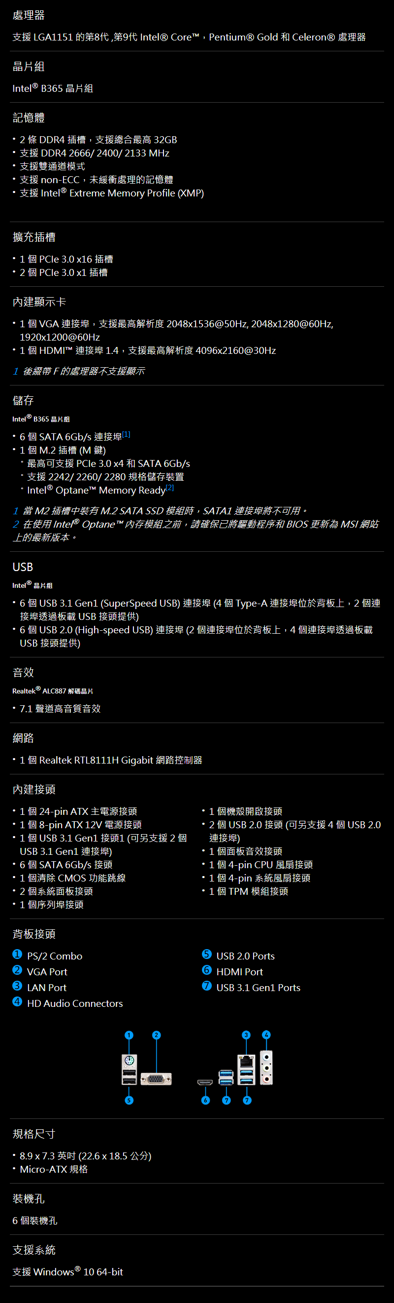 微星 B365M PRO-VH(M-ATX/1A1H/註四年)