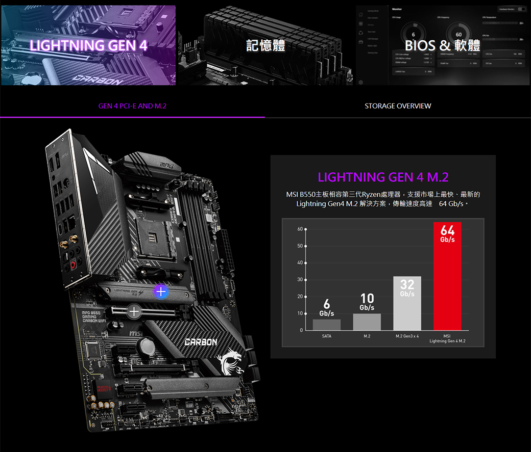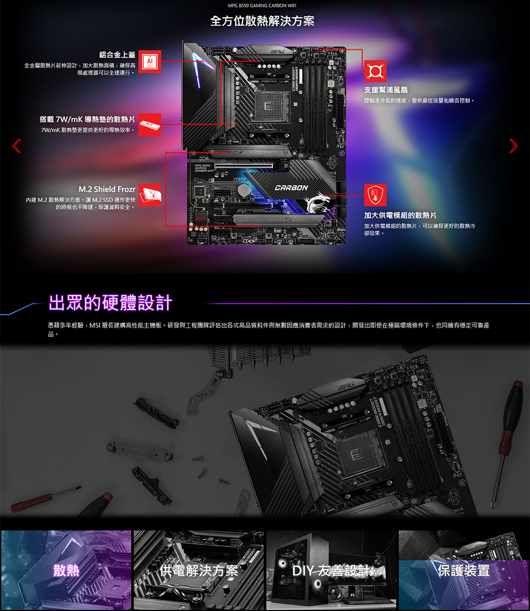 微星 MPG B550 GAMING CARBON WIFI(ATX/1H1P/2.5G/ax+BT/五年)12+2+1相供電