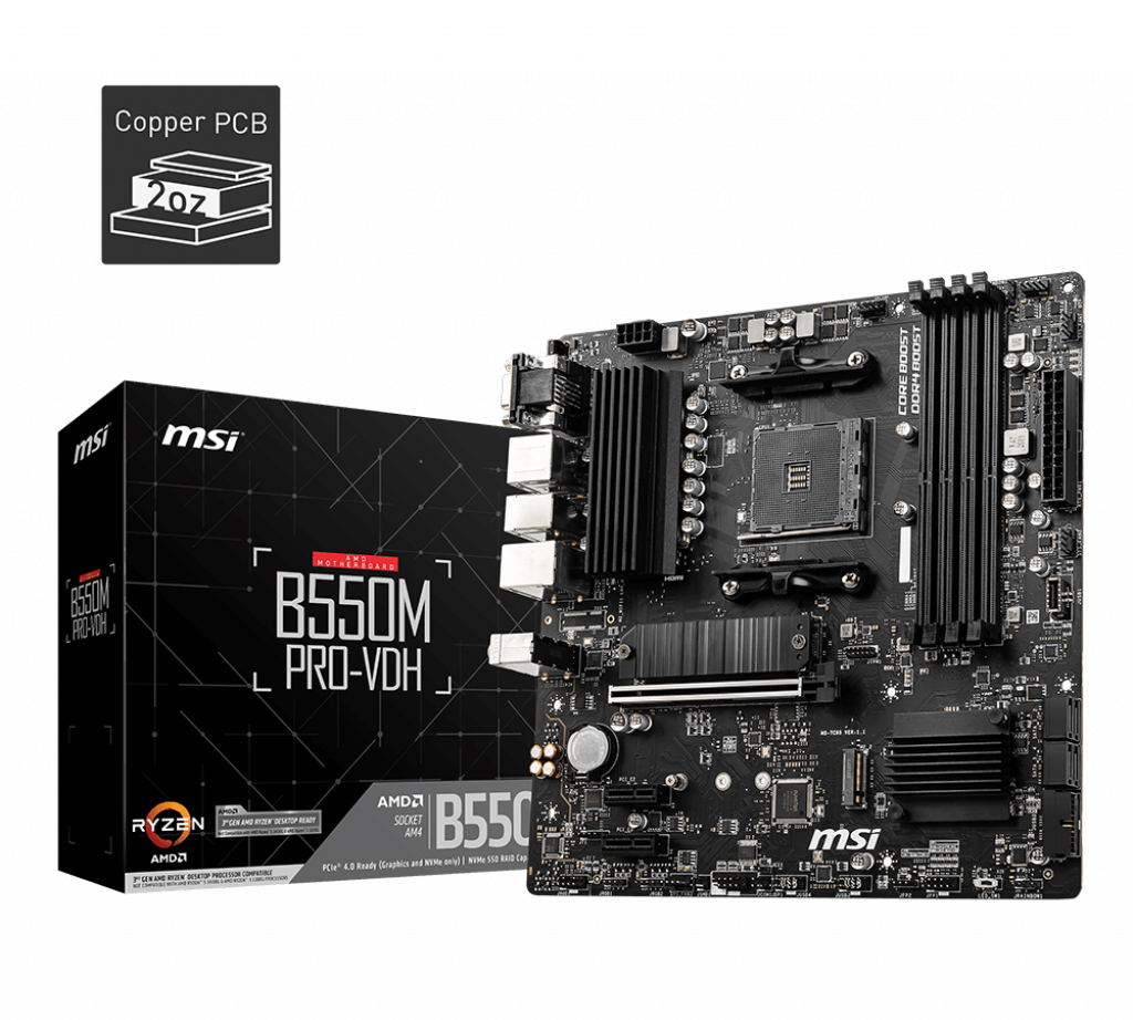 微星 B550M-PRO-VDH(M-ATX/1A1H1P/Realtek LANac/註四年)4+2+1相供電(78A)