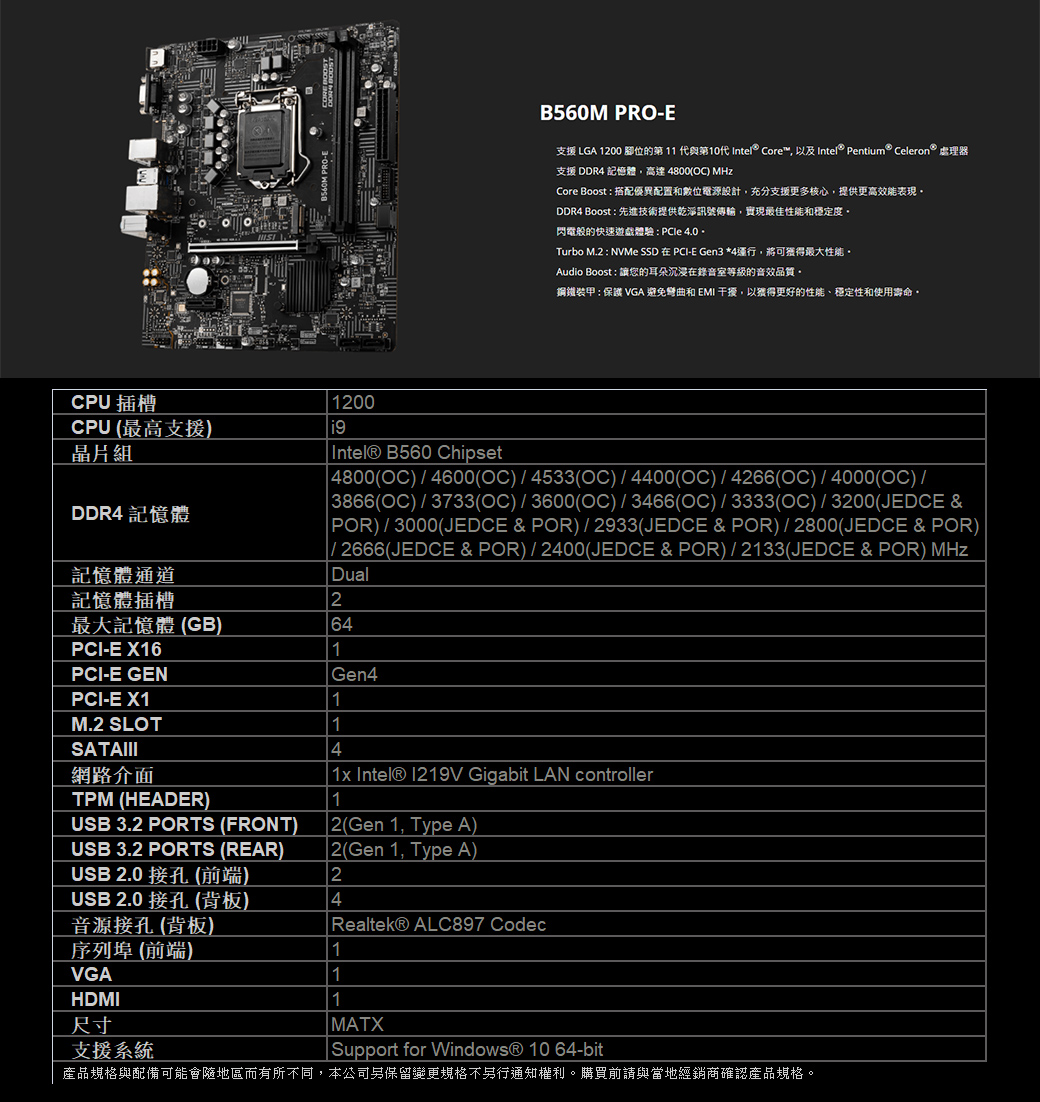 微星 B560M PRO-E(M-ATX/1A1H/Intel 1Gb/註四年) 4+2+1相供電