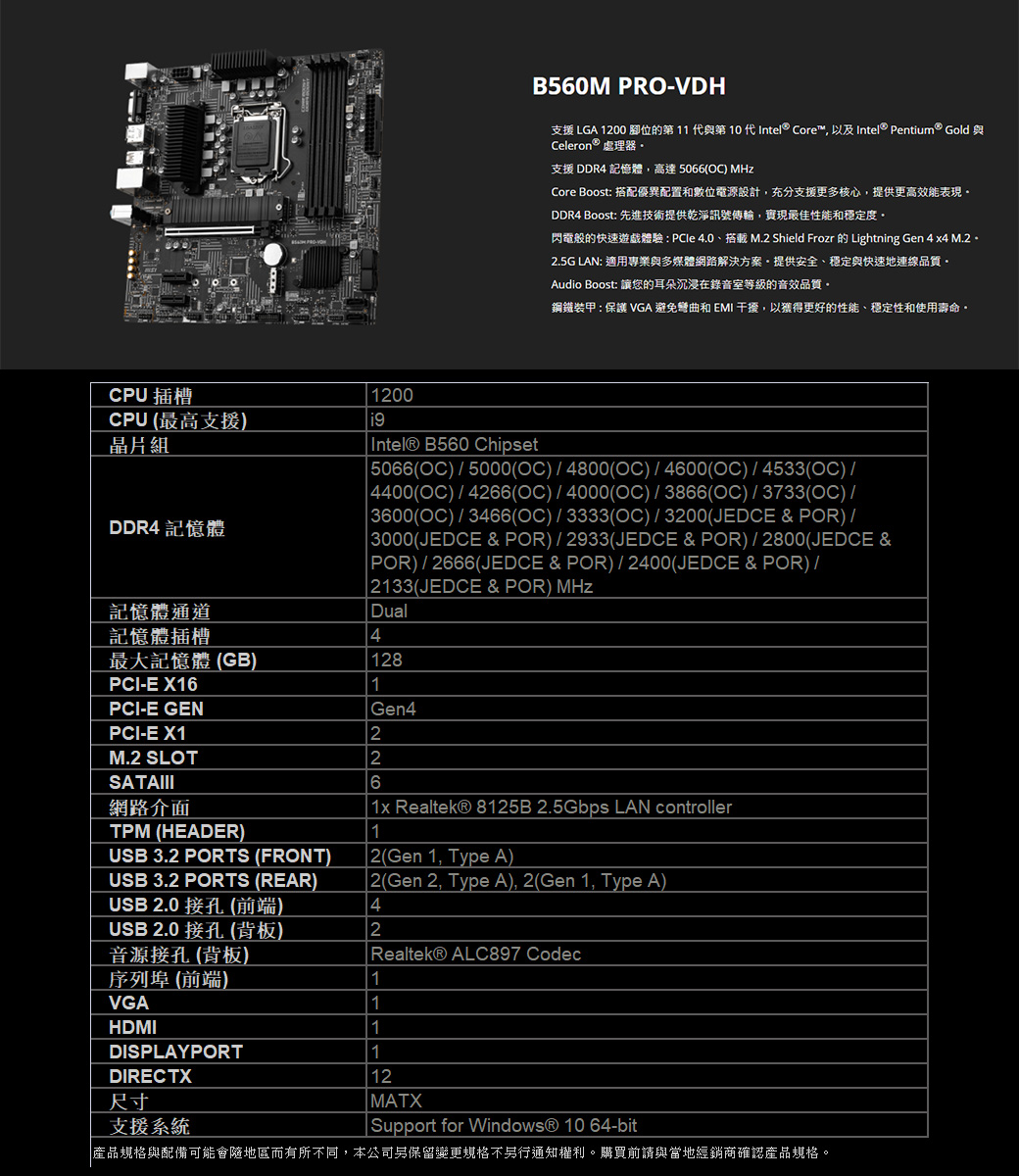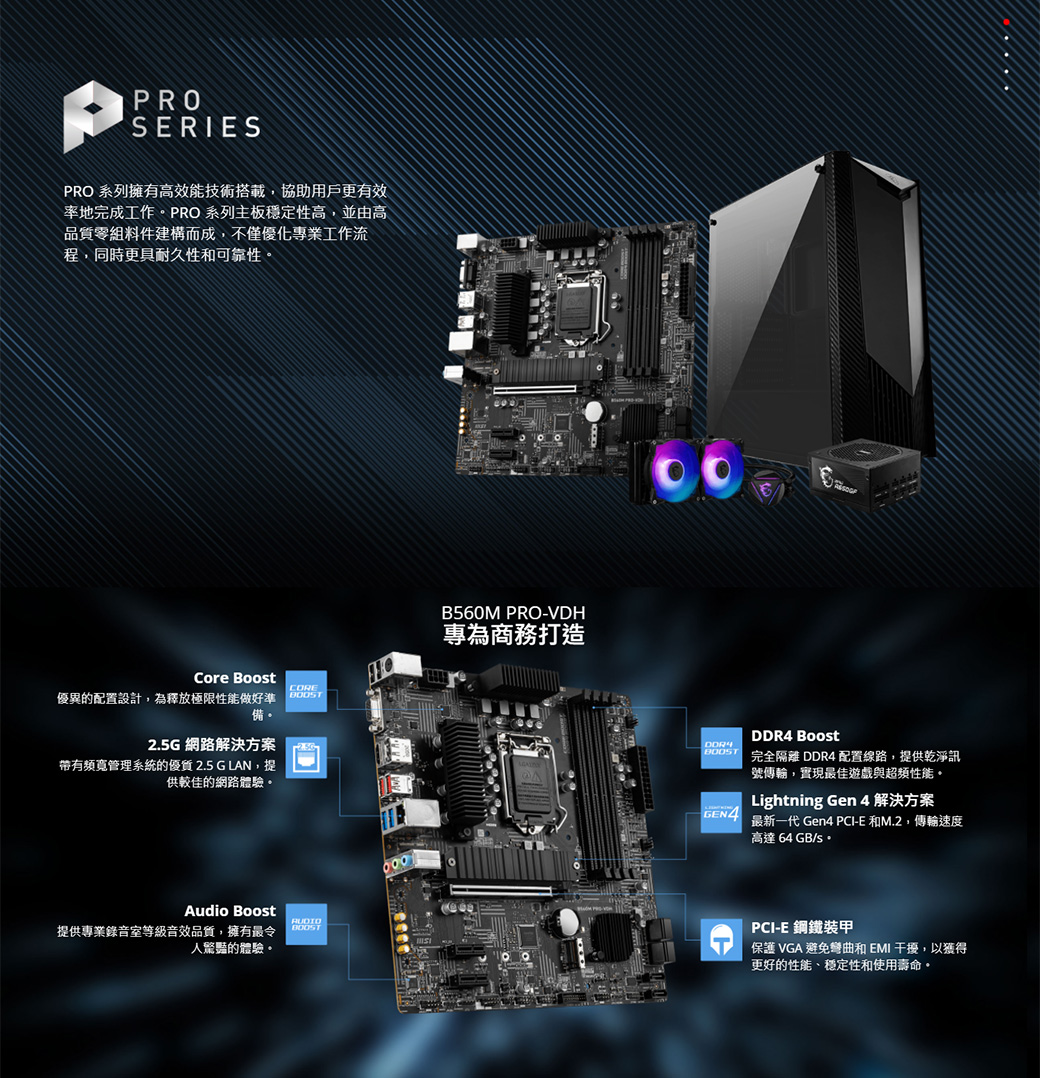 微星 B560M PRO-VDH(M-ATX/1A1H1P/Realtek 2.5G/註四年) 521相供