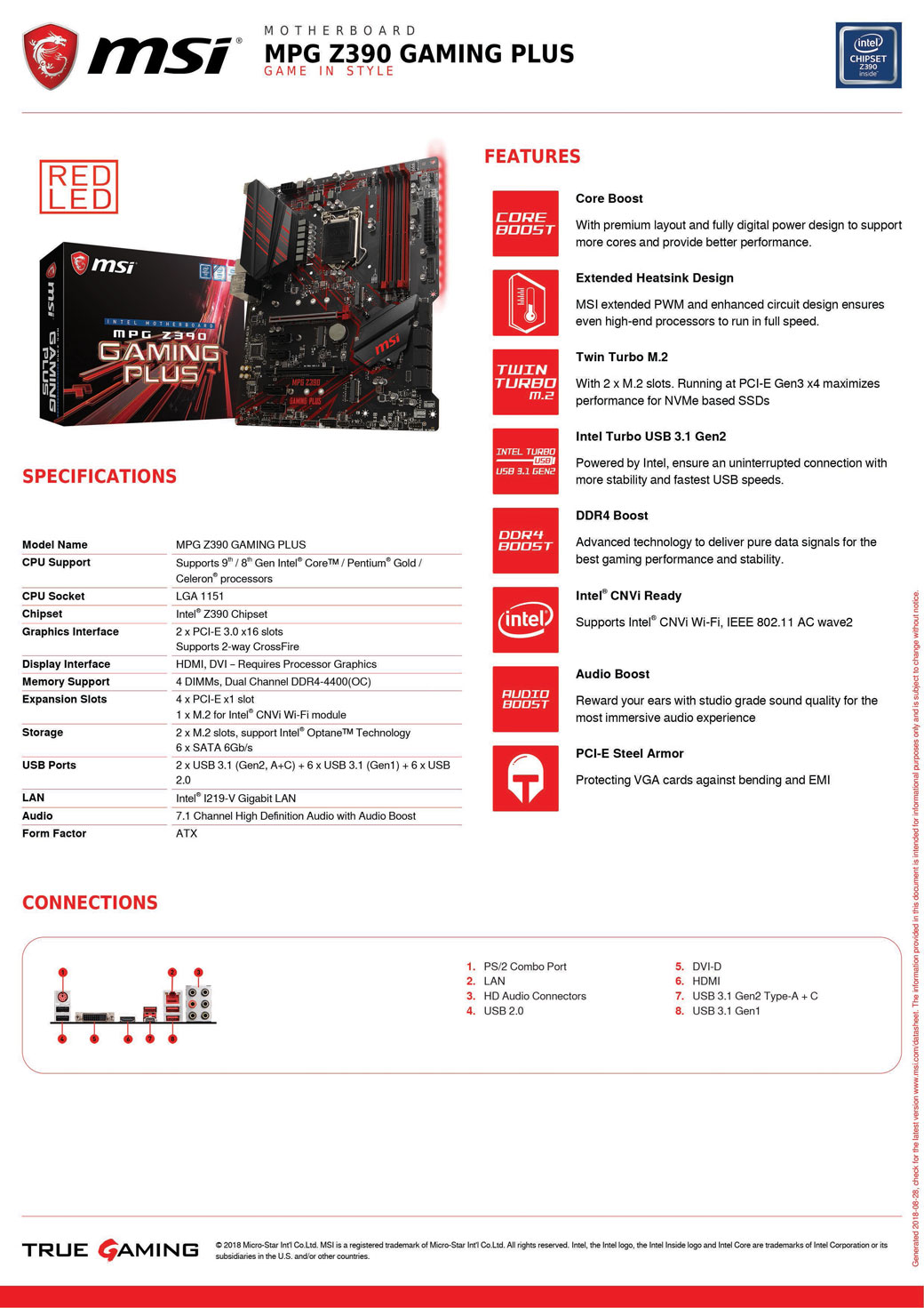 微星 MPG Z390 GAMING PLUS(ATX/1D1H/I網/CNVi/網註五年)