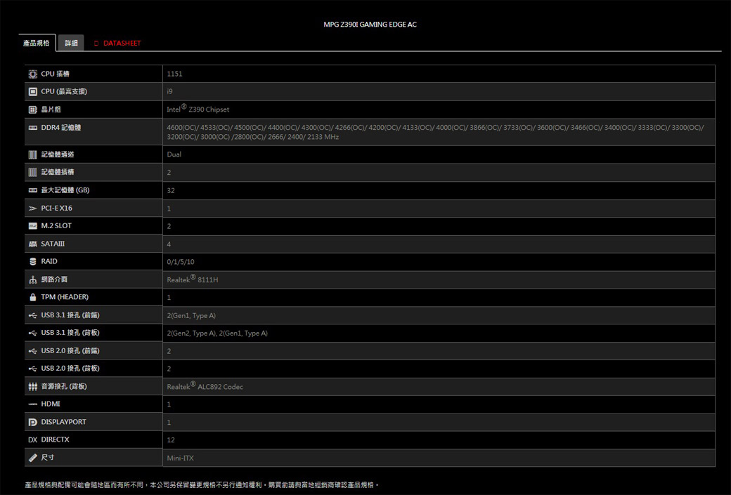 微星 MPG Z390I GAMING EDGE AC(mini-ITX/1H1P/acBT5/註五年)