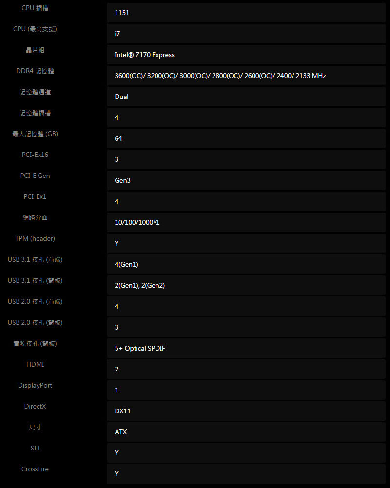 • 微星 Z170A GAMING M3 主機板