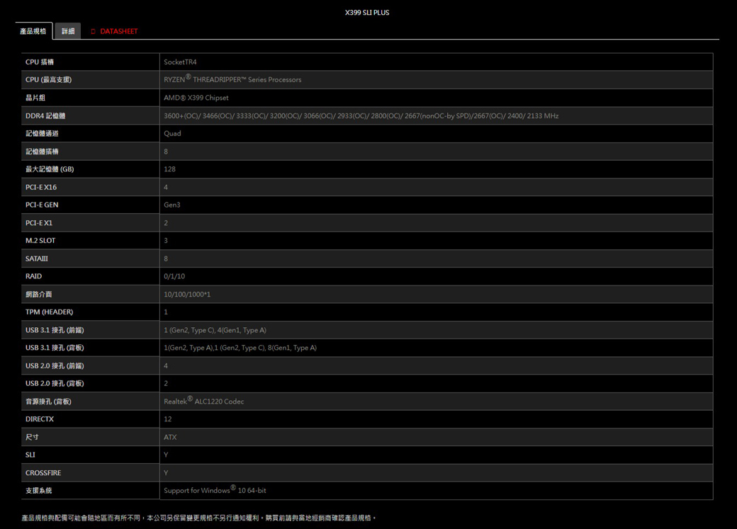 微星 X399 SLI PLUS(ATX/I網/4-Way SLI/12V 88p/註四年)