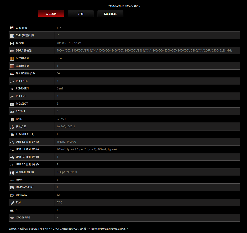 • 微星 Z370 GAMING PRO CARBON 主機板