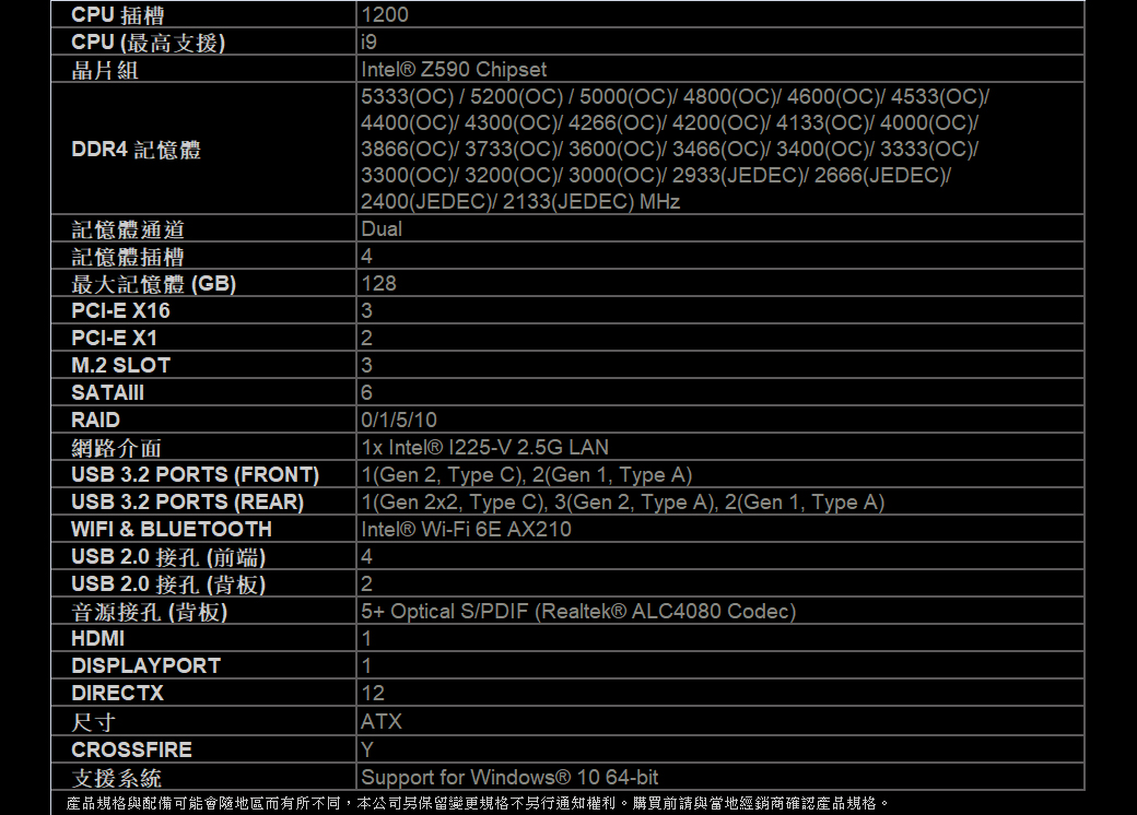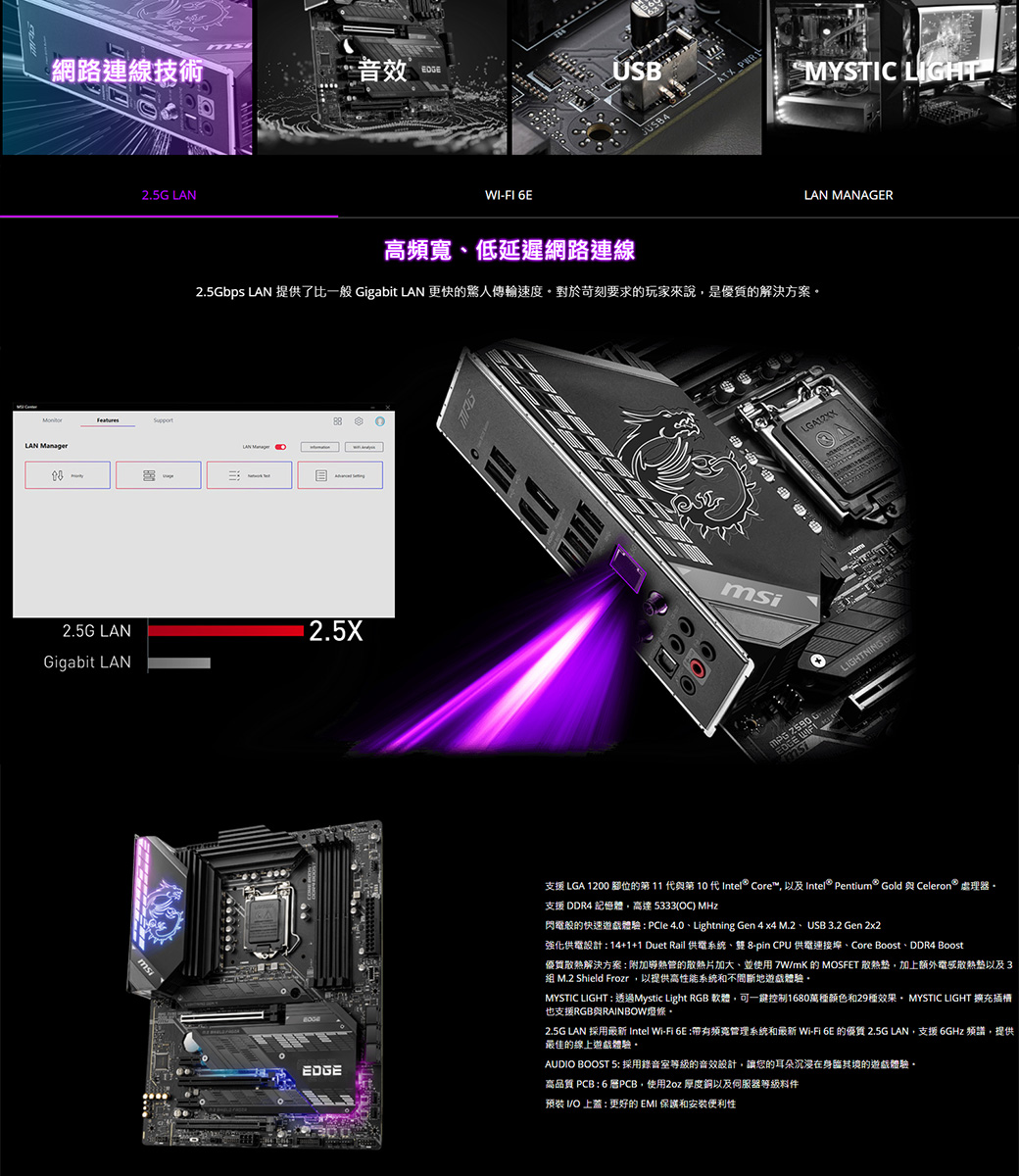 微星 Z590 GAMING EDGE WIFI(ATX/1H1P/Intel 2.5G/wifi6EBT5.2/