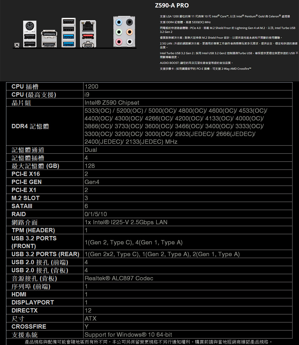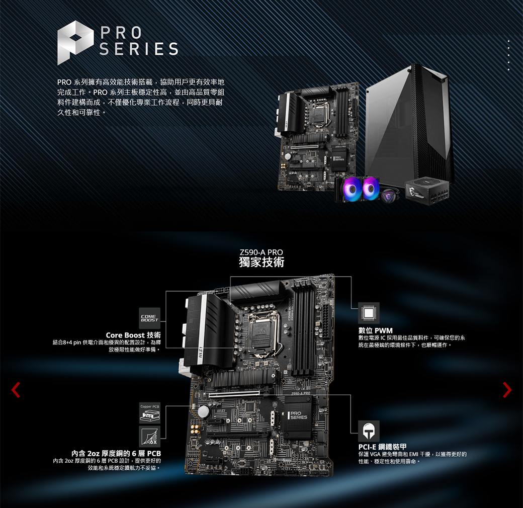 微星 Z590-A PRO(ATX/1H1P/Intel 2.5G/註四年) 1221相供電
