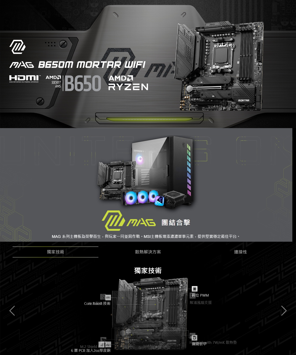 微星 MAG B650M MORTAR WIFI(M-ATX/1H1P/Realtek2.5G+Wi-Fi 6E)12+2+1相電源