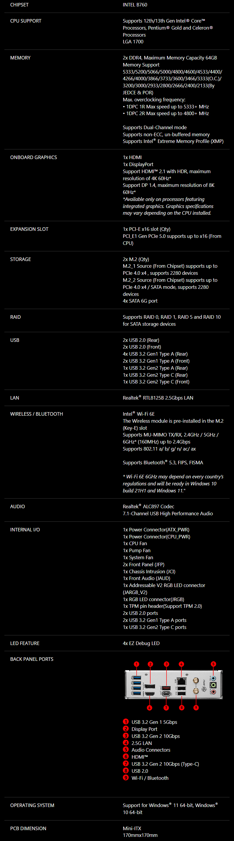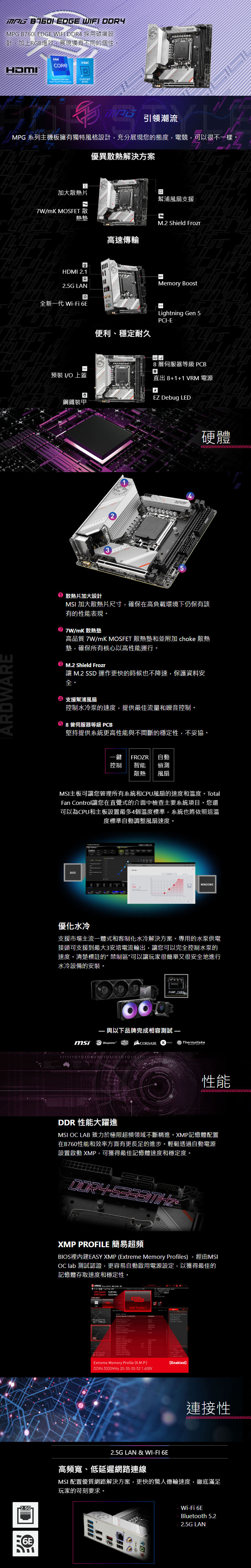 微星 B760I EDGE WIFI DDR4(Mini-ITX/Realtek 2.5Gb+Wi-Fi 6E/註五年)8+1+1相供電