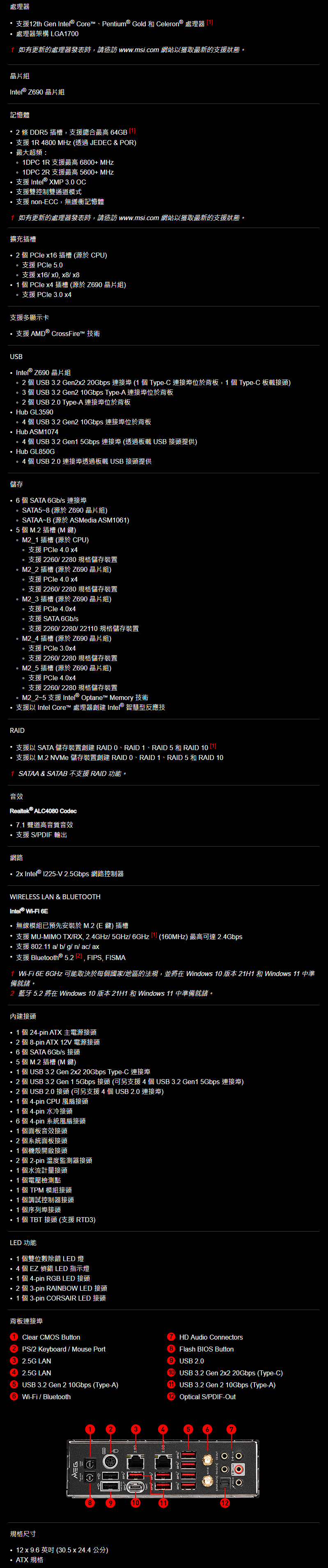 微星 Z690 UNIFY-X(ATX/Intel 2.5G*2+Wi-Fi 6E/註冊五年) 19+2相電源