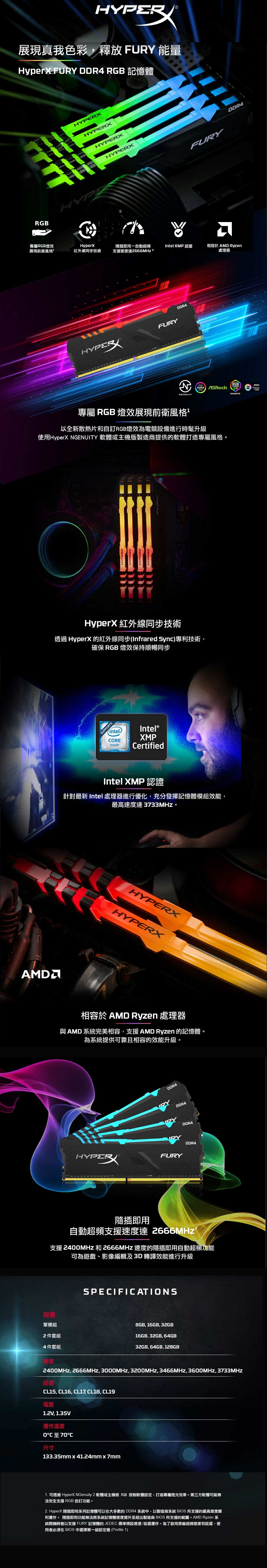 • 金士頓 HyperX FURY RGB DDR4-3466 16GB(8G*2)