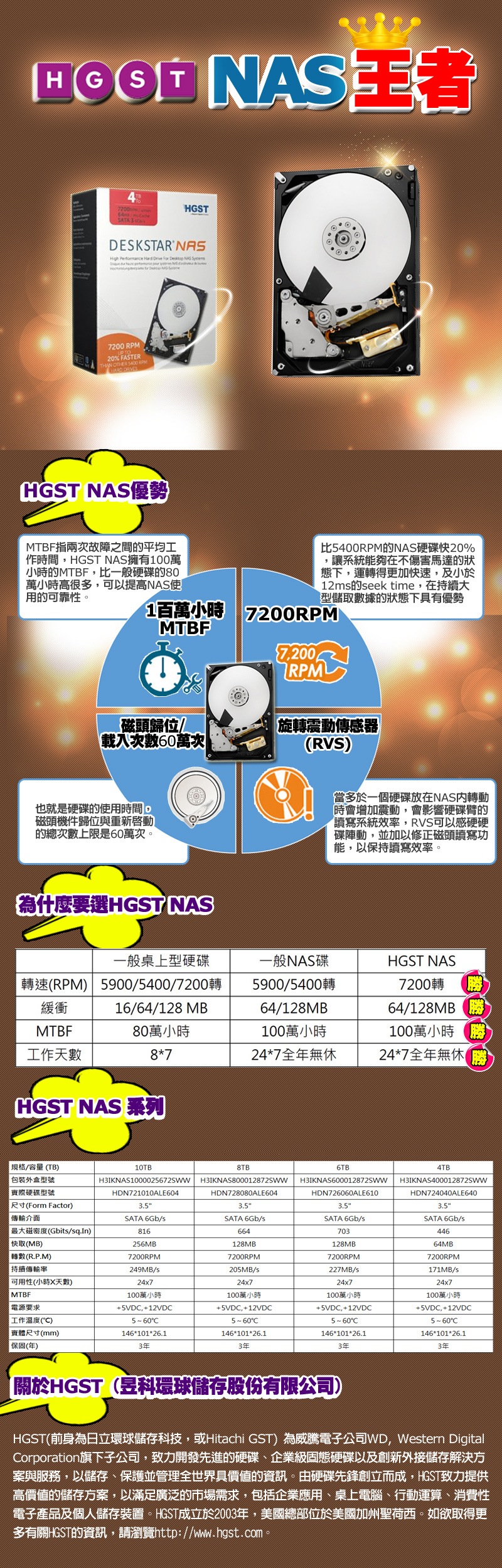 HGST 4TB(H3IKNAS400012872SWW)【NAS碟】128MB/7200轉/三年保