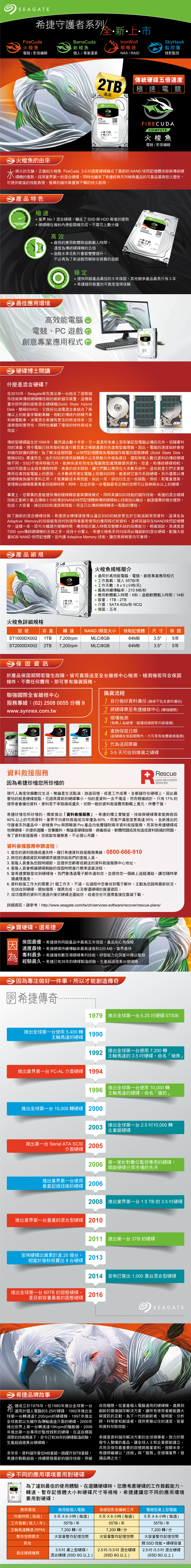 Seagate 2TB【火梭魚】(ST2000DX002)(64M/7200轉/內建8G SSD/五年保)