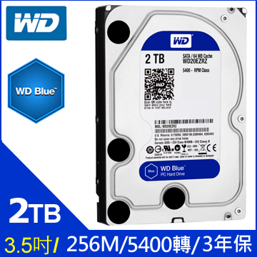【裝機價】WD 2TB(WD20EZAZ)【藍標】(256M/5400轉/三年保)