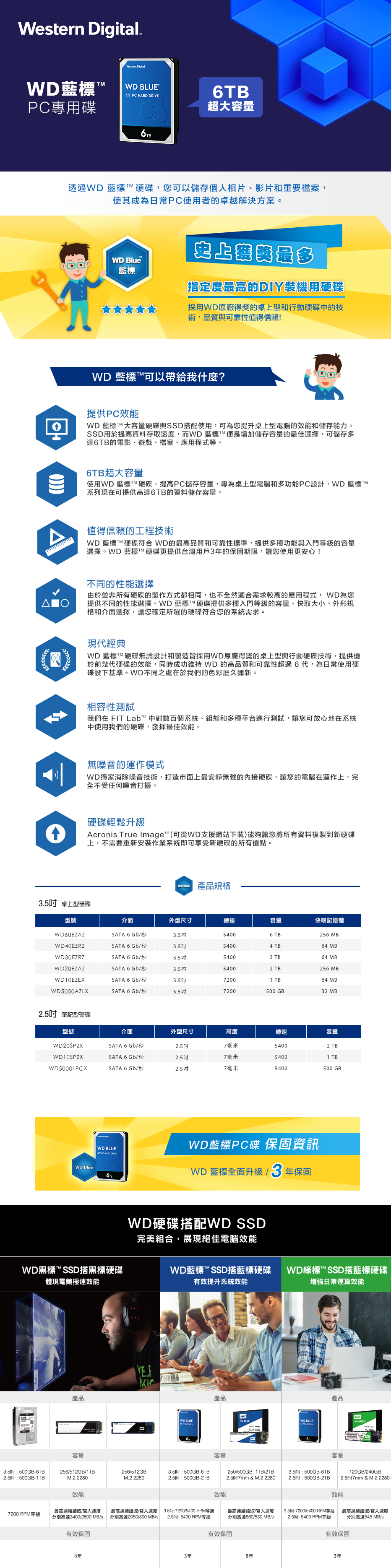 WD 6TB【藍標】(256M/5400轉/三年保)(WD60EZAZ)