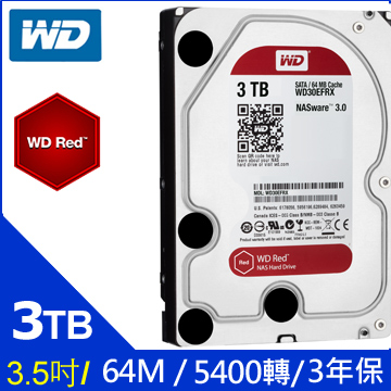 • WD 3TB【紅標Plus】64M/5400轉/三年保(WD30EFRX)