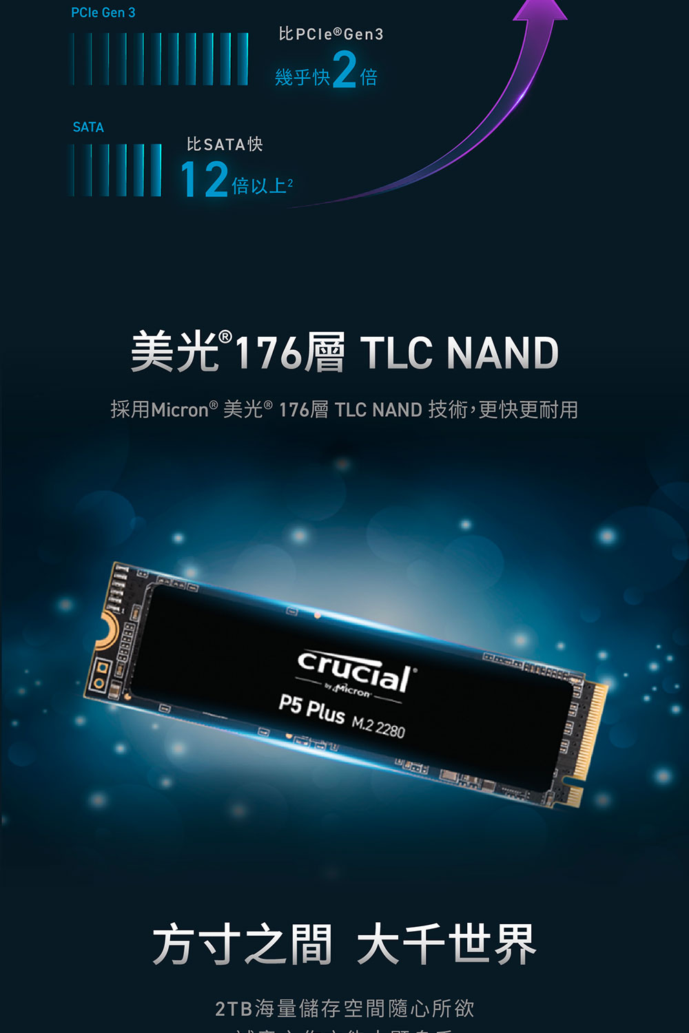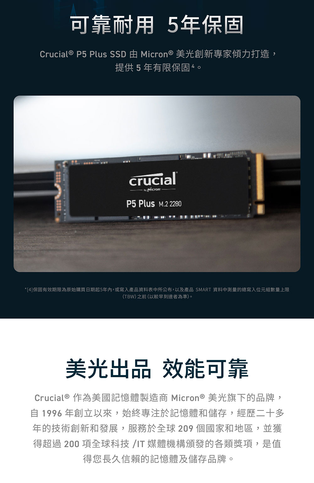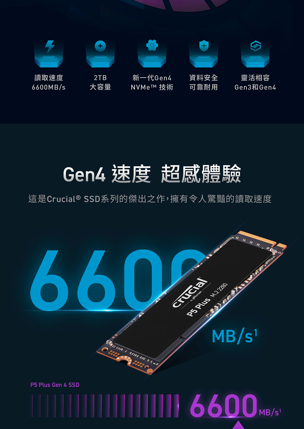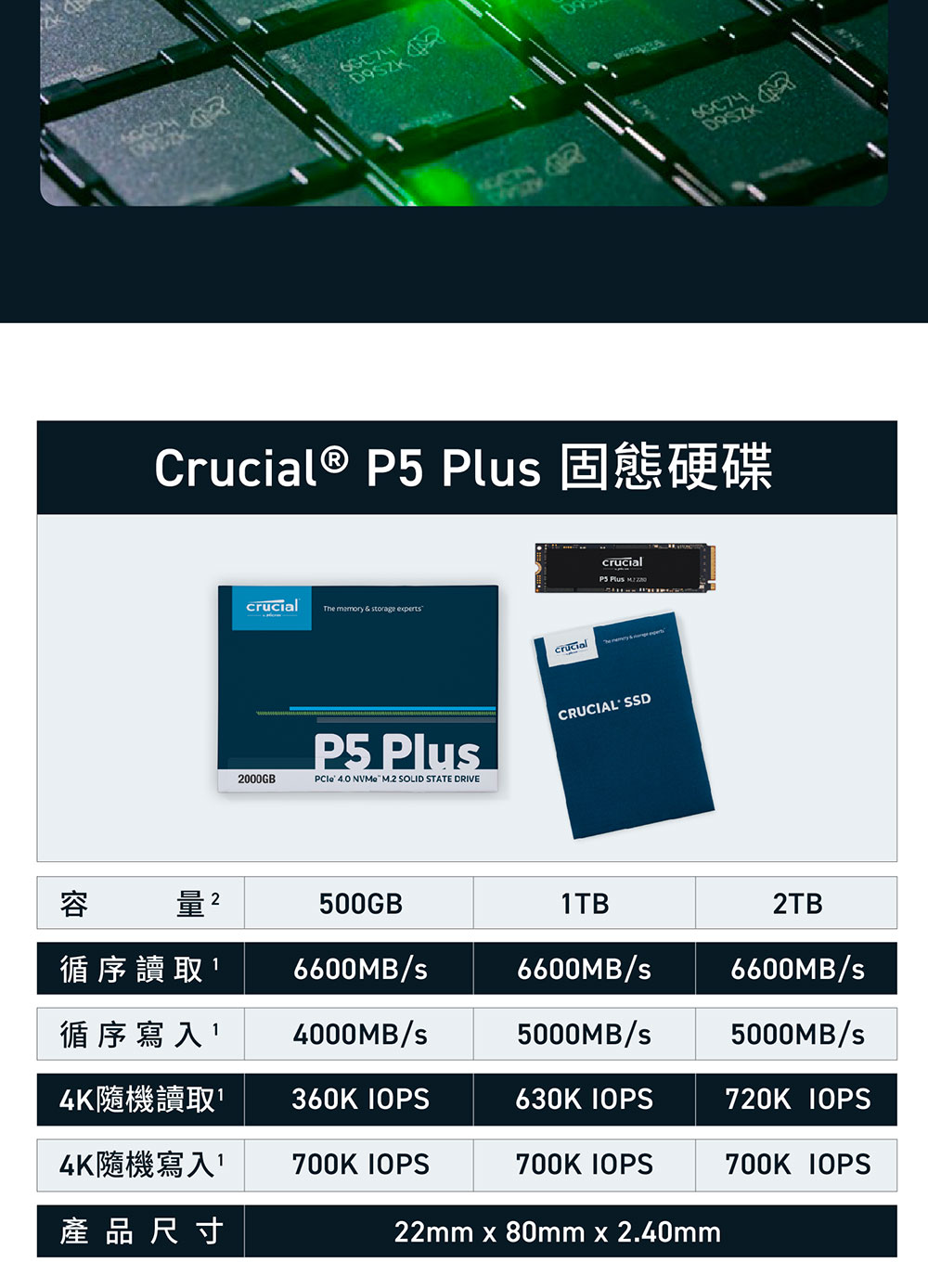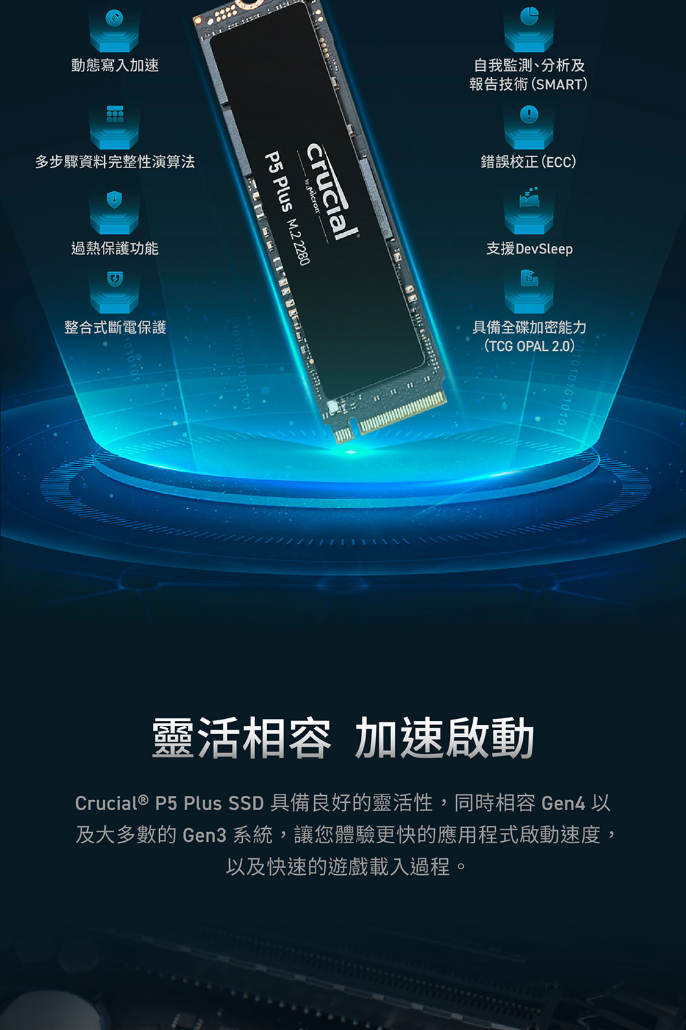美光Micron Crucial P5 Plus 1TB PCIe M.2固態硬碟(讀:6600M/寫:5000M)