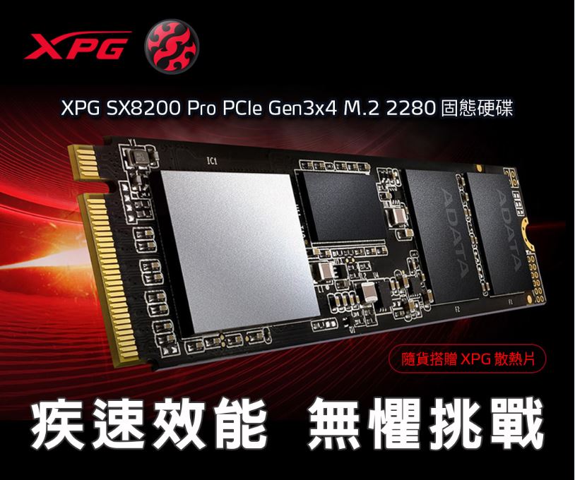 【搭機價】威剛 XPG SX8200Pro 256G/M.2 PCIe 2280/讀:3500M/寫:1200M/TLC【五年保】附散熱片