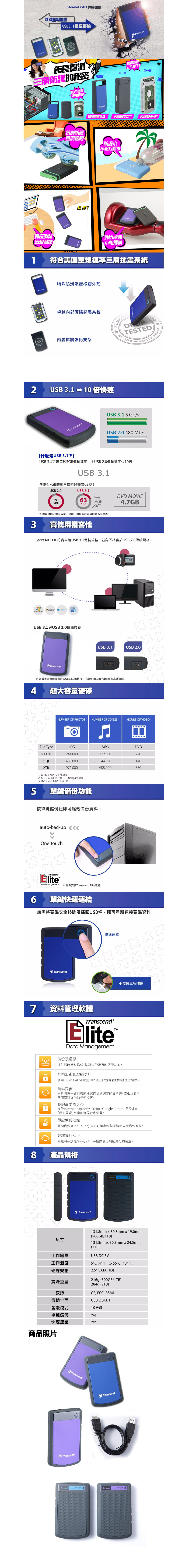 • 創見 StoreJet 25 H3P 1TB USB3.1 2.5吋行動硬碟-(