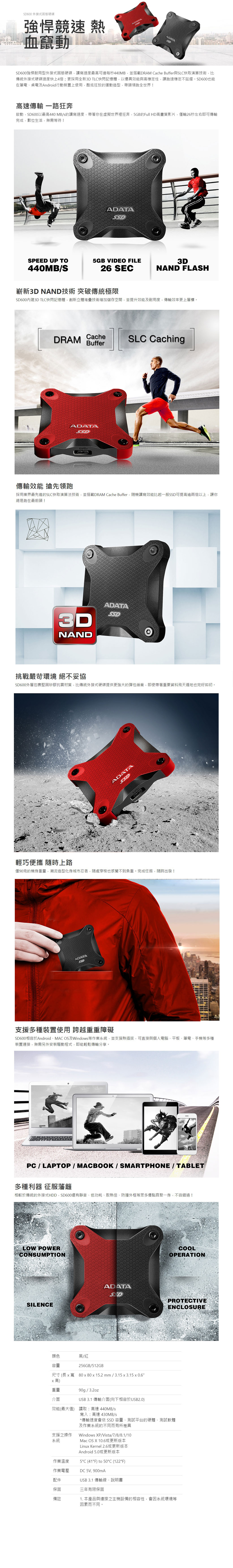 ADATA威剛 SD600 256GB(紅) USB3.1 外接式SSD行動硬碟