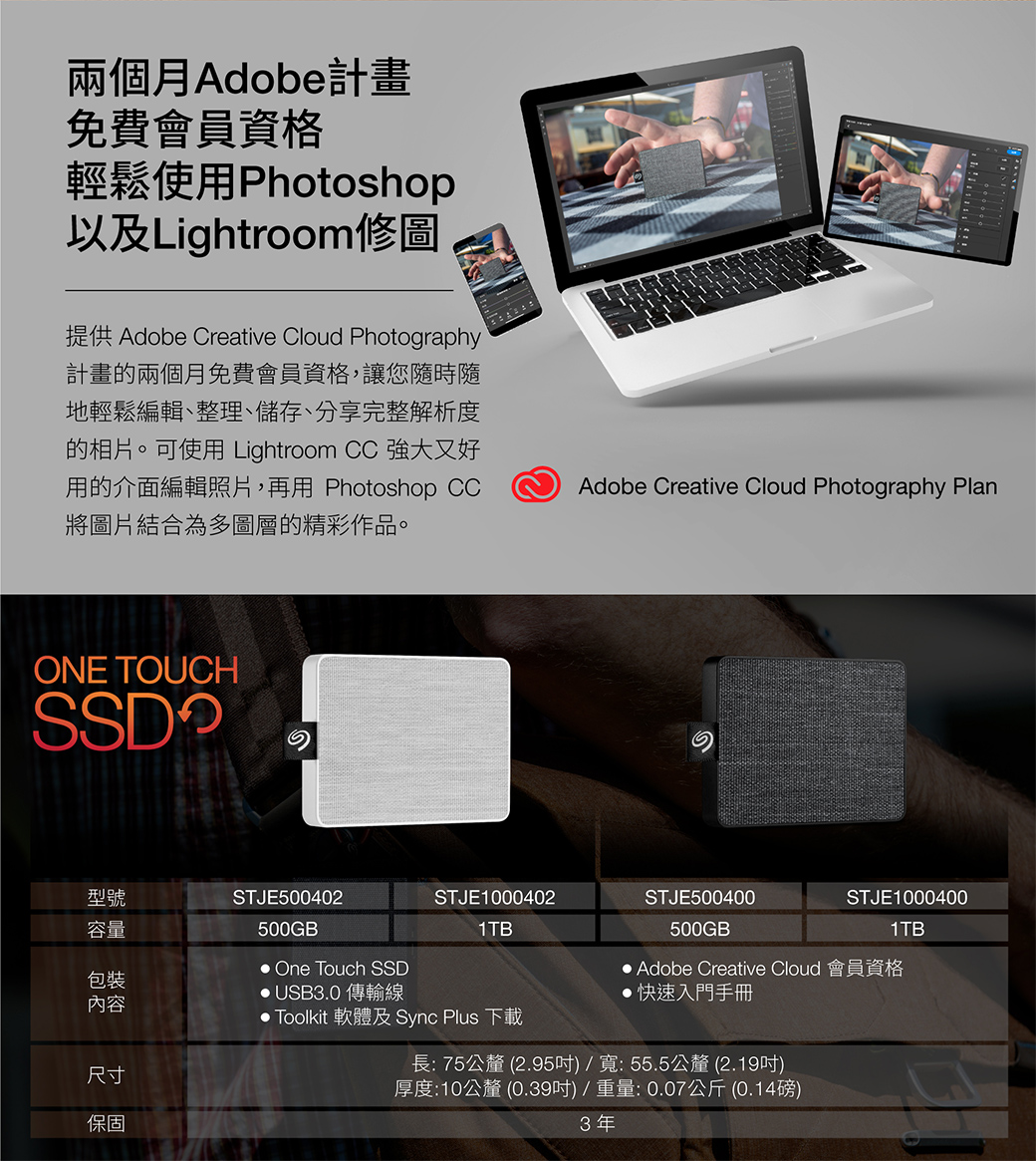 • Seagate One Touch 1TB 外接SSD(霧夜黑)
