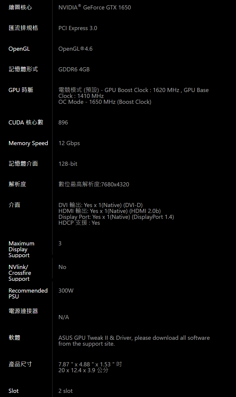 華碩 DUAL-GTX1650-O4GD6-MINI