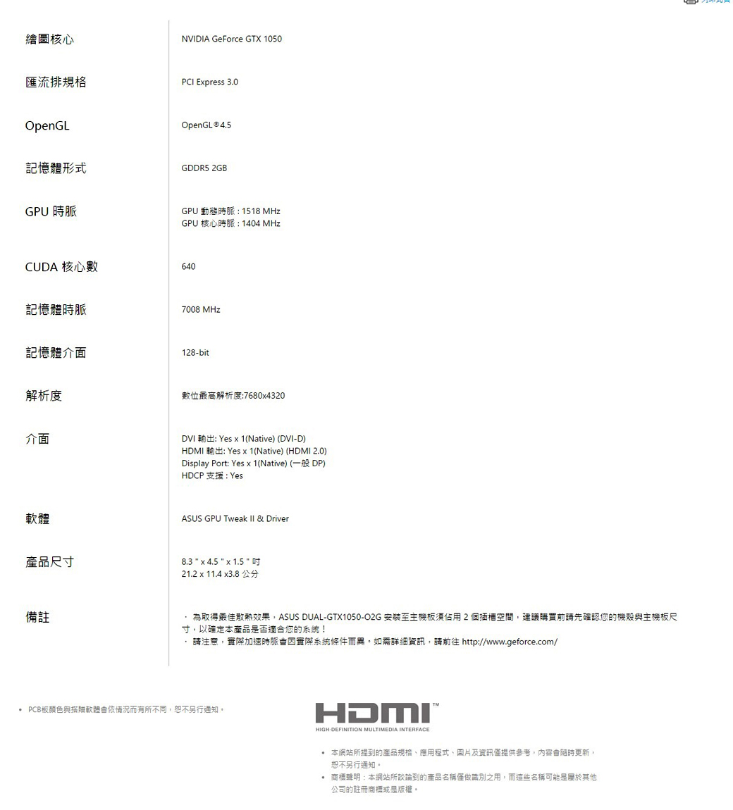 • 華碩 DUAL-GTX1050-O2G(雪原豹)