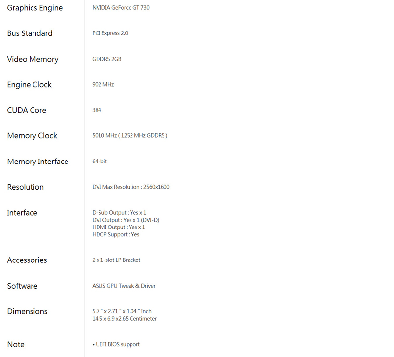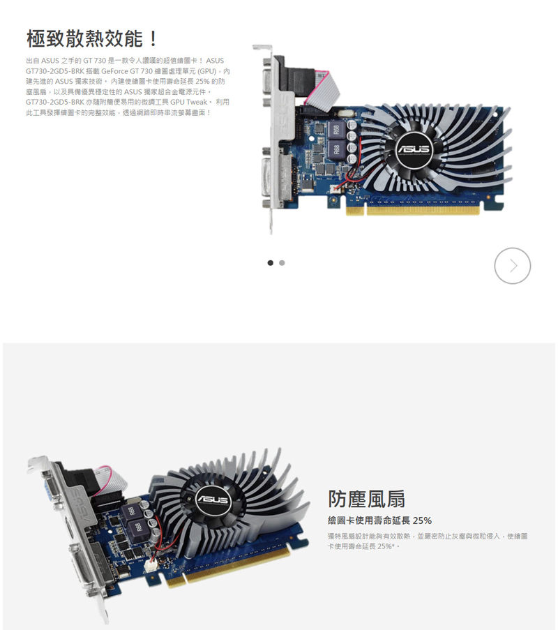 華碩 GT730-2GD5-BRK(902MHz/2G DDR5/14.5cm/註四年)
