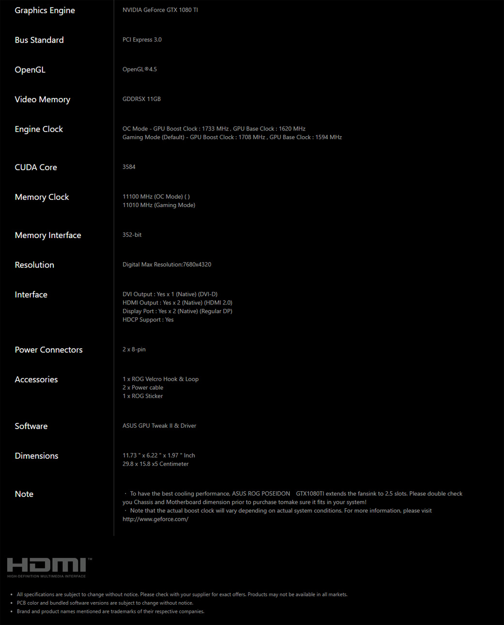 華碩 POSEIDON-GTX1080TI-P11G-GAMING 顯示卡 海神來臨