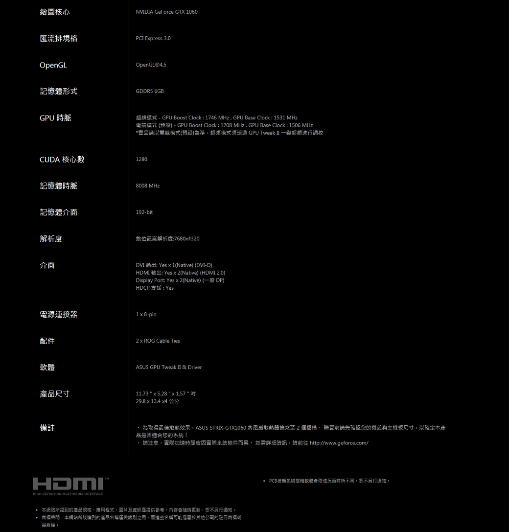 • 華碩 ROG STRIX-GTX1060-6G-GAMING