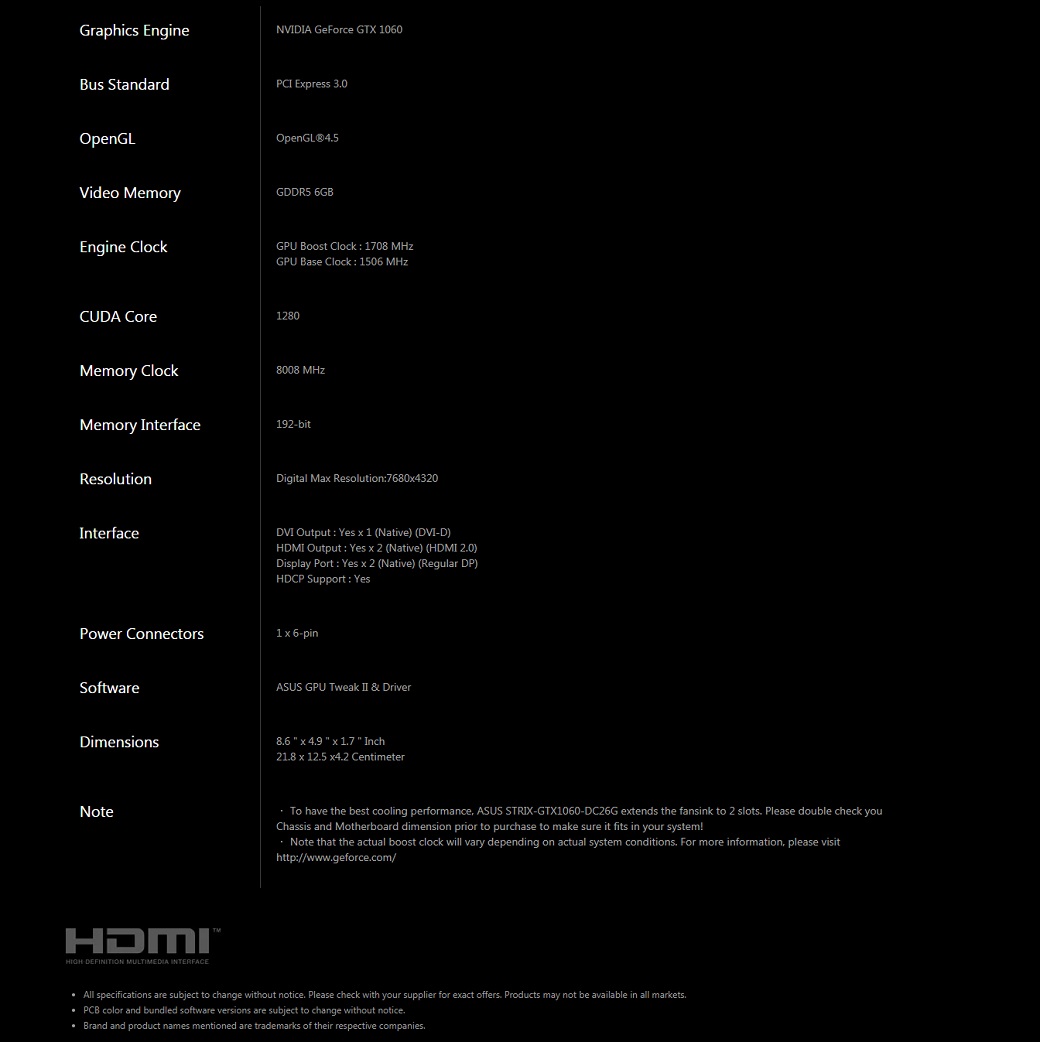 • 華碩 ASUS STRIX-GTX1060-DC26G