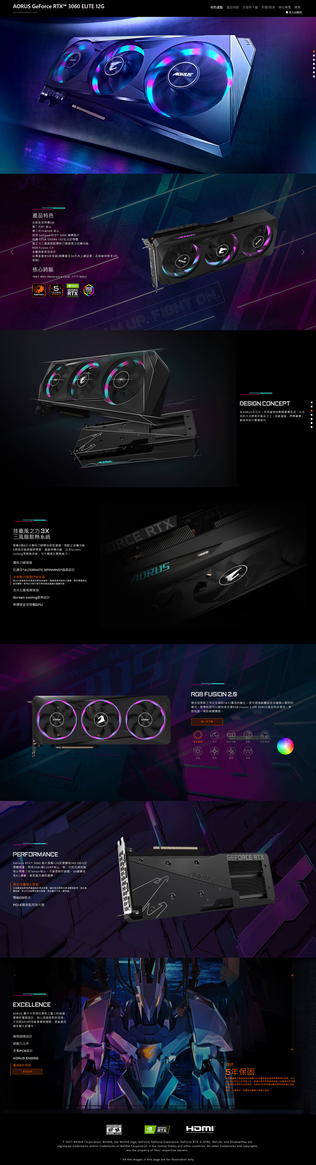 • 【限搭機】技嘉 AORUS 3060 ELITE 12G(rev2.0)