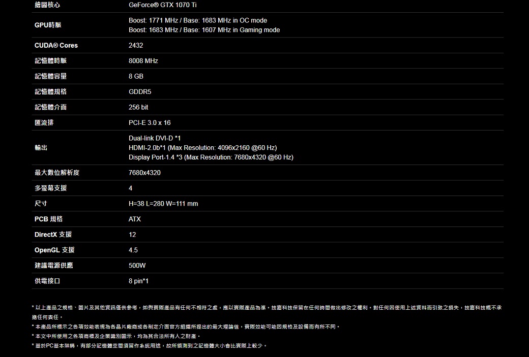 技嘉 AORUS GTX1070Ti 8G(1683MHz/28cm/註五年)