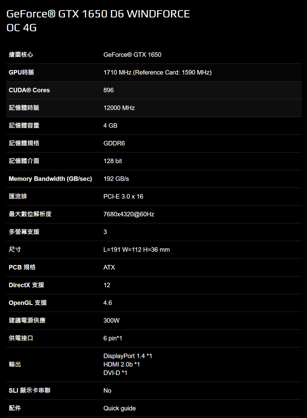 • 【限搭機 賣完為止】技嘉 GTX1650 D6 WINDFORCE OC 4G