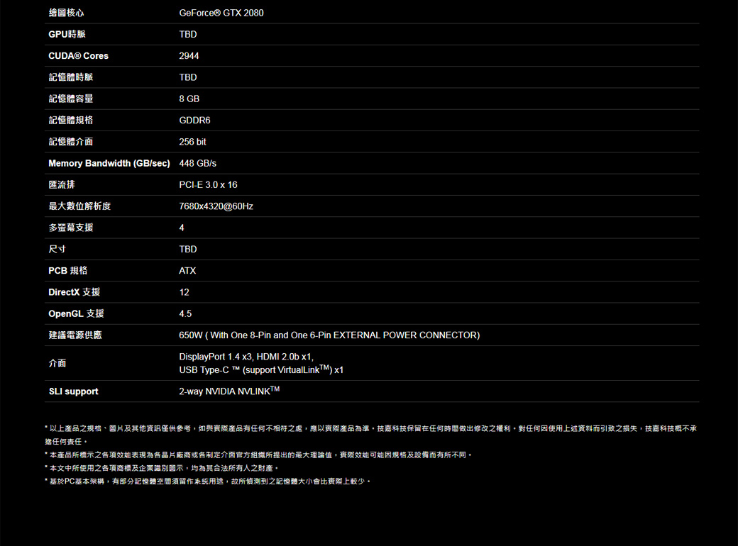 • 技嘉 RTX 2080 WINDFORCE OC 8G