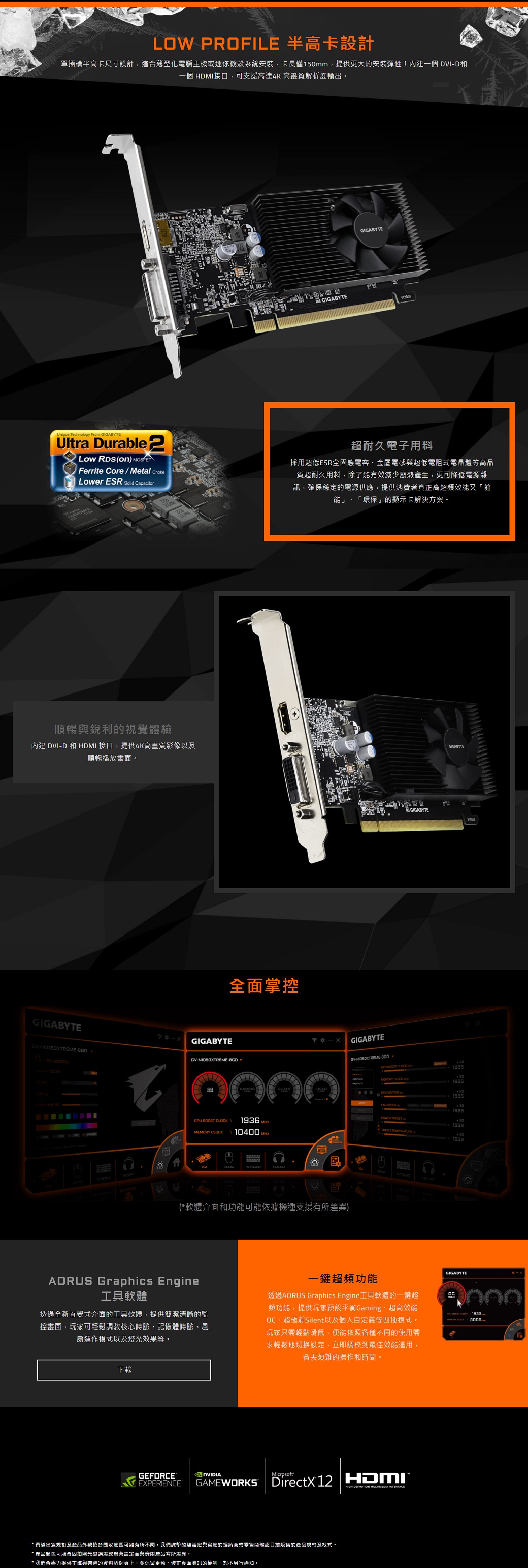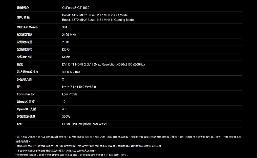 技嘉 GT1030 Low Profile D4 2G(1417MHz/GDDR4/15cm/單風扇)