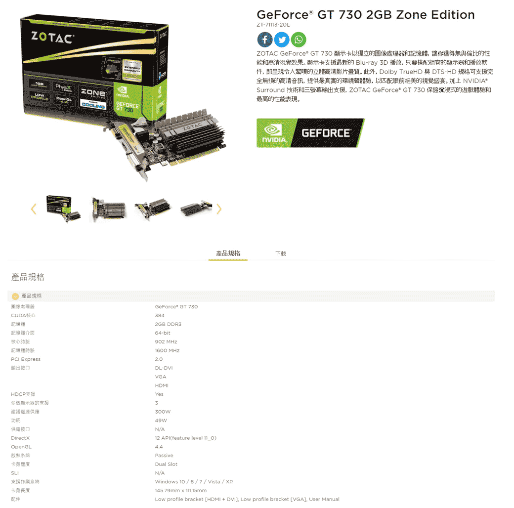 索泰 ZOTAC GT730-2GD3-L(902MHz/14.5cm/註四年)