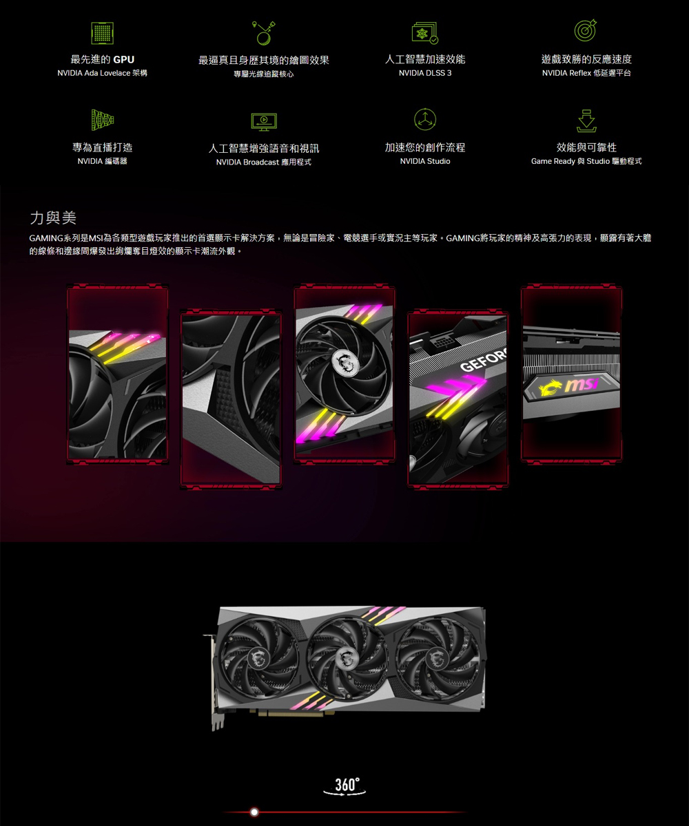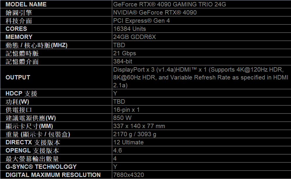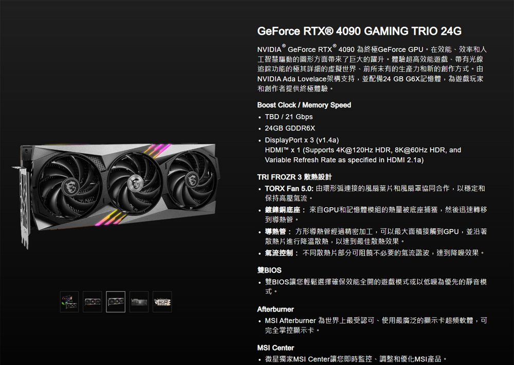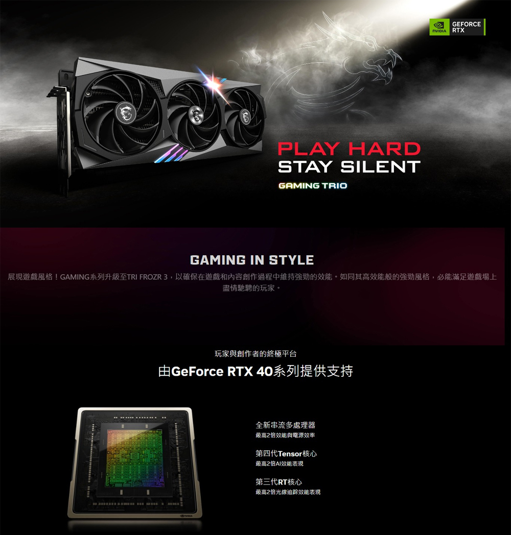 微星 RTX4090 GAMING TRIO 24G(MHz/33.7cm/註冊五年)鍍鎳銅底座散熱
