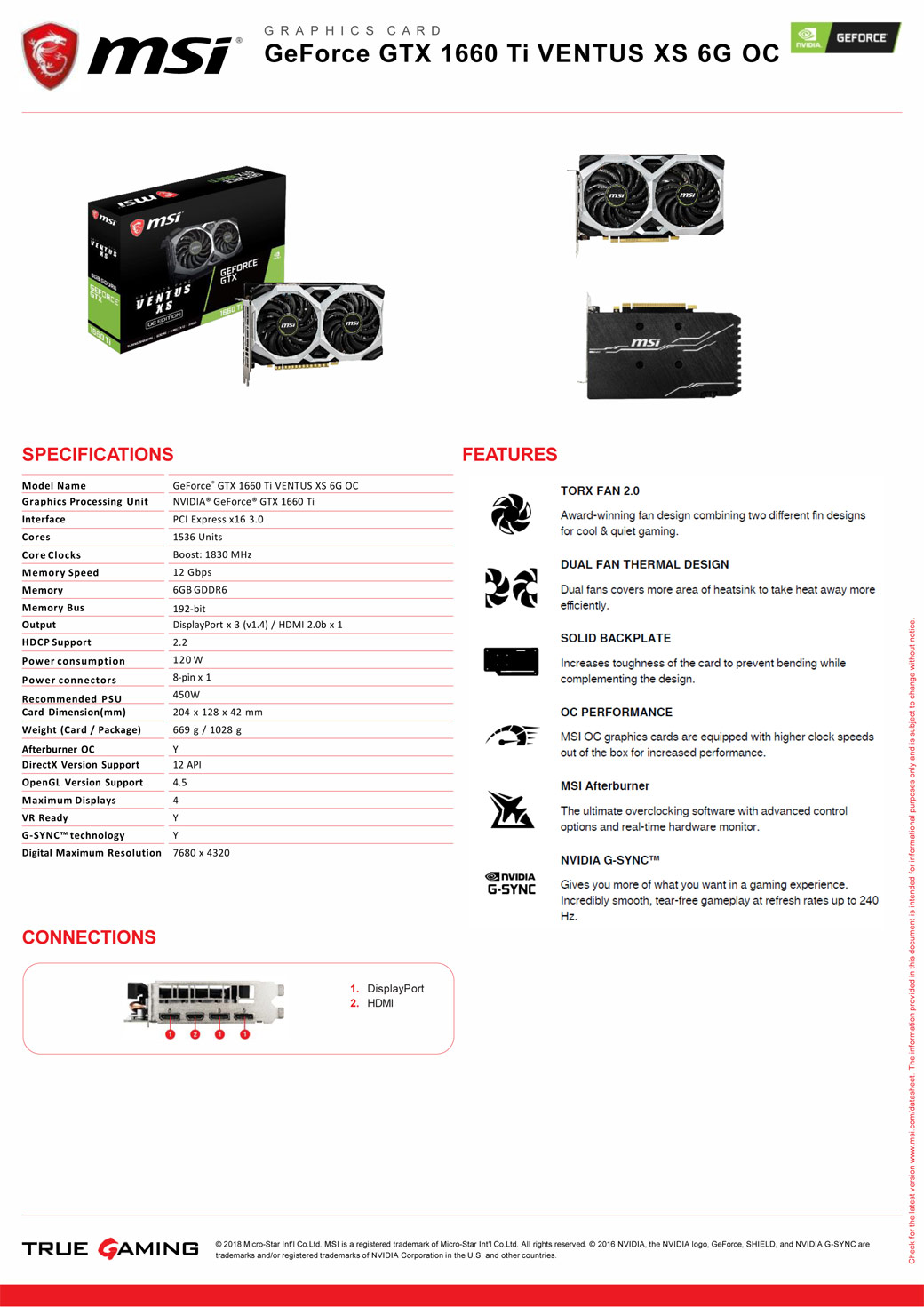 • 微星 GTX1660Ti VENTUS XS 6G OC