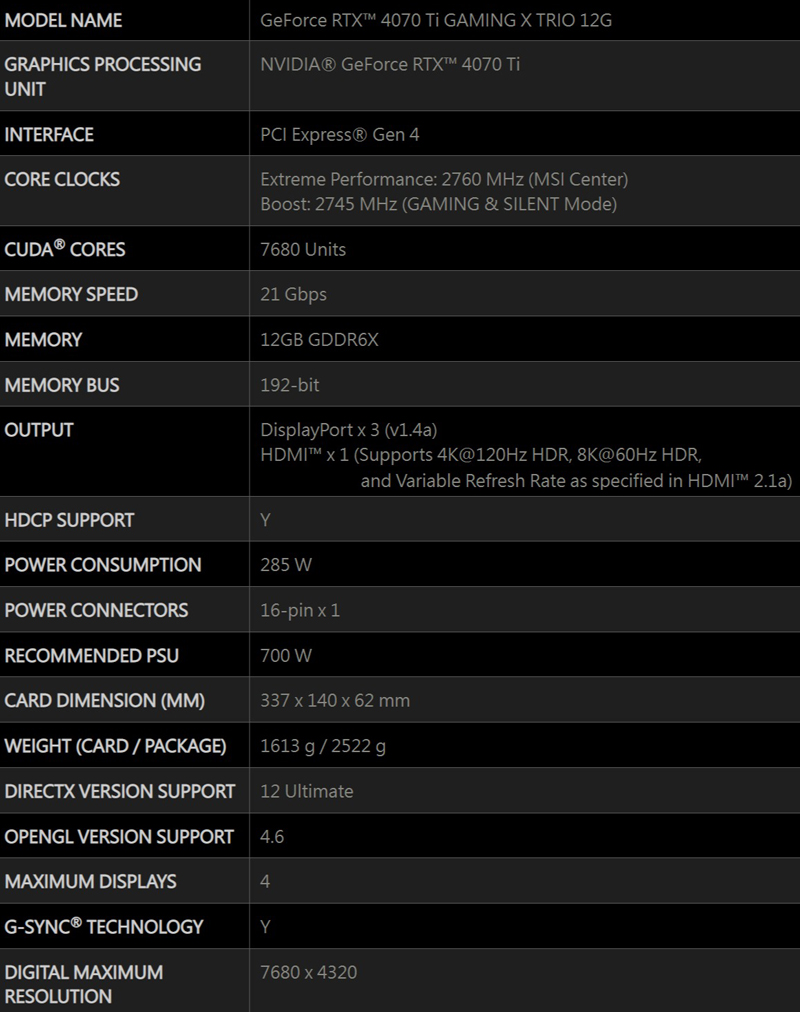 • 微星 RTX4070TI GAMING X TRIO 12G
