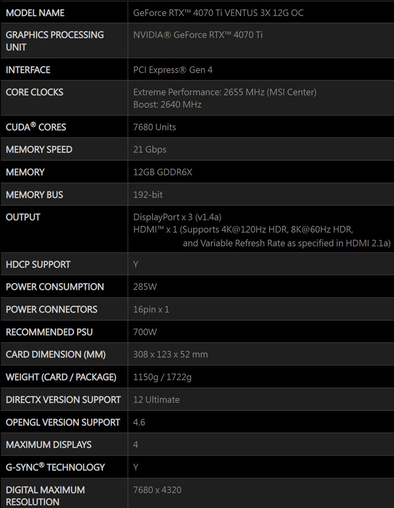 • 微星 RTX4070TI VENTUS 3X 12G OC
