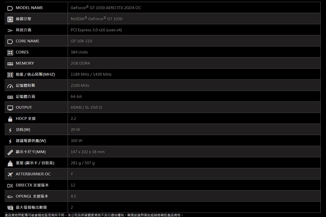 微星 GT1030 AERO 2GD4 OC(1518MHz/DDR4/14.7cm/三年保)