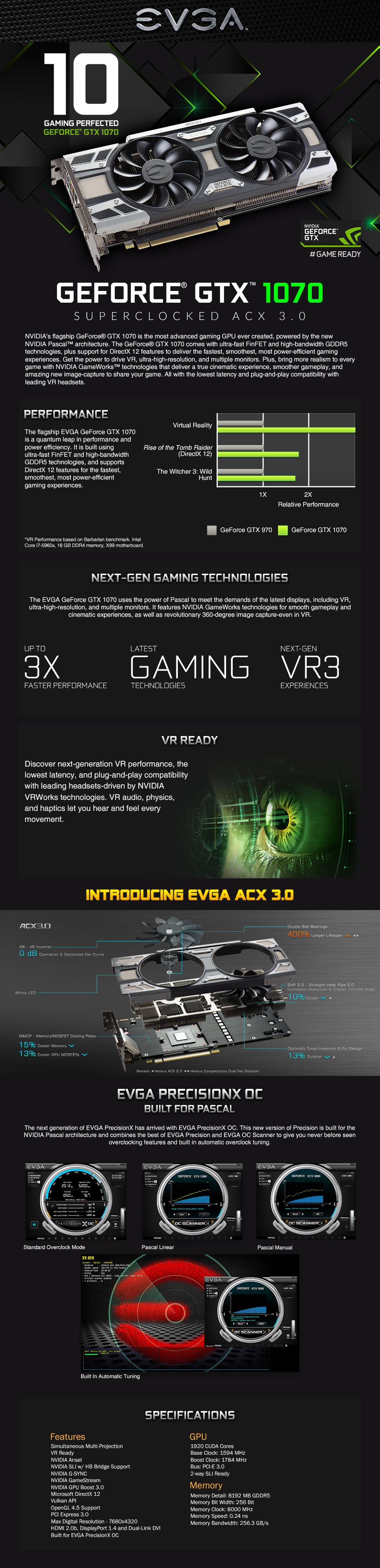 • EVGA GTX1070 8G SC BP GAMING ACX3.0