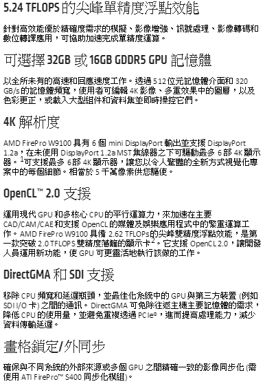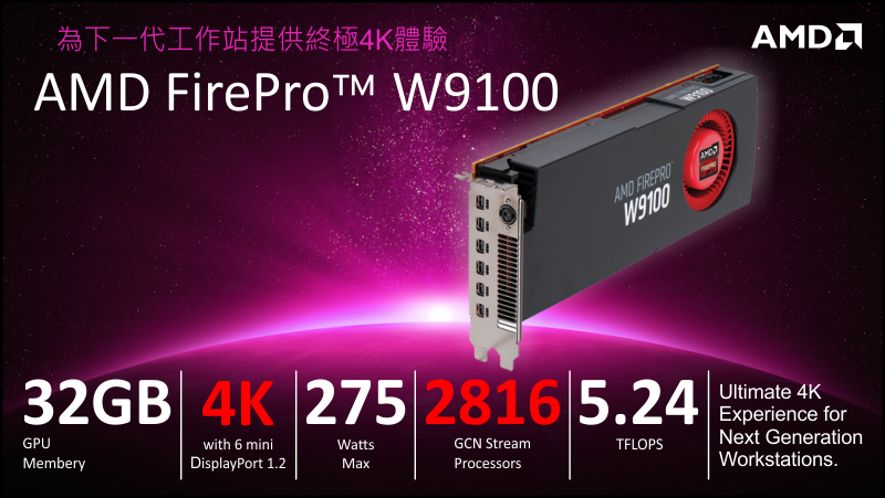 AMD FirePro W9100 (32GB GD5 512bit/SP:2816/6螢幕輸出/三年保) 無附轉線
